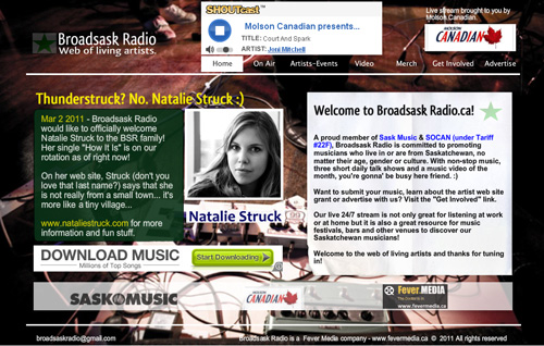 Natalie was also the featured musician on the front page of Broadsask Radio on March 2, 2011.